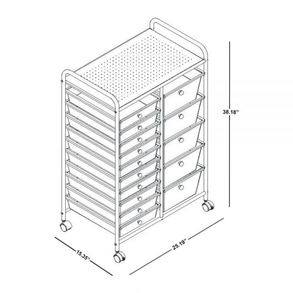 15-Drawer Mobile Cart, 38-3/16”H x 25-1/4”W x 15-3/8”D, Black/Chrome – Keep your work space clean and tidy with the Realspace 15-Drawer Mobile Cart. With 10 narrow drawers and 5 deep drawers, you have plenty of space to organize all of your essentials for easy access.
