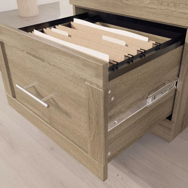 - 2 drawers with ball bearings and full-extension slides. Hang rails accommodate letter- and legal-size files.