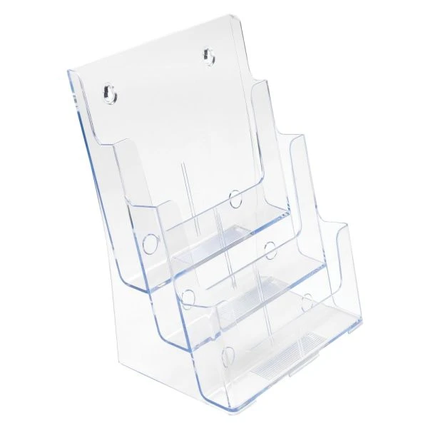 3-Tier Magazine Holder, 12-11/16″H x 9-1/2″W x 6-1/4″D – Literature holders are great tabletop displays for restaurant menus, bank signs, Hotel concierge desks, Hotel registration desks, or any company marketing material.