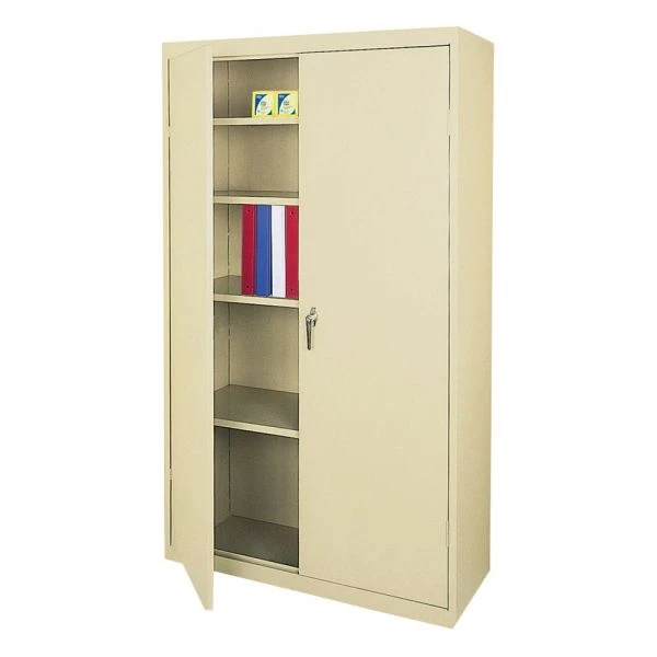 36″W Steel 5-Shelf Cabinet, Putty – Keep office supplies and other items organized with this 72″H x 36″W Realspace steel storage cabinet. A fixed shelf provides room for your tools and supplies, while the 4 adjustable shelves let you customize your storage options. A metal construction with a sleek finish offers durability and adds a professional look to your space. This Realspace steel storage cabinet features a magnetic door latch for easy access.