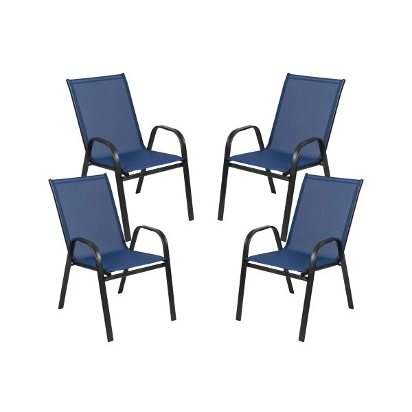 4 Pack Brazos Series Navy Outdoor Stack Chair with Flex Comfort Material and Metal Frame – Escape the indoors and relish your outdoor living space with this set of 4 Stackable Patio Chairs with Flex Comfort Material. Sling patio chairs offer comfort in a stylish presentation with its relaxed design. Have enough seating for family and friends with these stackable patio chairs that can be stacked up to four chairs high and pushed aside when not in use. This outdoor metal dining chair has a streamlined look with a powder coated steel frame and a comfortable textilene fabric material that is breathable. For longevity, care should be taken to protect from long periods of wet weather. Don’t stay cooped up in your home…get outdoors more. Pair a few chairs with a rectangular or round patio table to have drinks, play games or enjoy your meal at any time of the day.