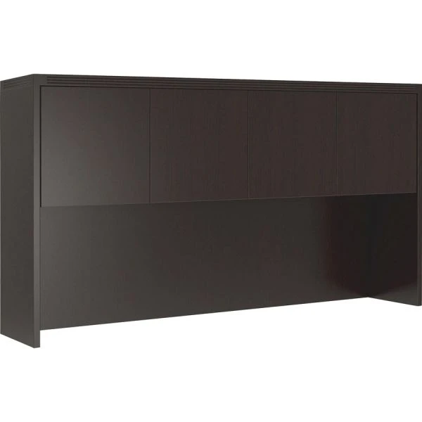 Aberdeen Series 72″ Hutch, Wood Doors – Upgrade your Aberdeen Credenza Desk (sold separately and required for use) and easily add valuable storage space to your office with the Aberdeen 72″ Hutch. Designed to attach to the top of your Aberdeen Credenza Desk (sold separately), the Aberdeen Hutch features two spacious compartments perfect for storing books, binders, bins, office tools, electronic devices, personal items and more. Pairs of laminate doors cover each compartment to help ensure your stored items remain unseen, so your work area maintains a cleaner, more organized look. Self-closing hinges on the doors help complete your closing motion and reduce the chance that the door you intended to shut remains slightly ajar. Grommet holes inside each compartment and on the back of the Hutch let you discreetly guide cords and cables from electronic devices – like a Wi-Fi printer, small sound system or paper shredder – to an available power outlet, helping you maintain your sleek, orderly-looking office. An eye-catching fluted trim wraps all the way around the 1-5/8″ thick top edge of the Hutch, providing a touch of stylish definition and conveying your appreciation for an attention to detail. A durable, scratch- and stain-resistant laminate finish helps the Hutch better withstand daily home or office use and maintain its professional look for longer. The Aberdeen Hutch coordinates with the entire Aberdeen Series of Desking, Conference and Reception Furniture, so you can create a complete, cohesive and professional office environment. To establish a comprehensive storage arrangement in your work area, consider also adding a coordinating Aberdeen Lateral File Cabinet and 36″ Storage Cabinet (both sold separately) to your expanding suite of contemporary office furniture. IMPORTANT NOTE. This Aberdeen 72″ Hutch requires an Aberdeen 72″ Credenza Desk (sold separately) for use. The Hutch attaches to the top of the Credenza Desk using the included screws and brackets.