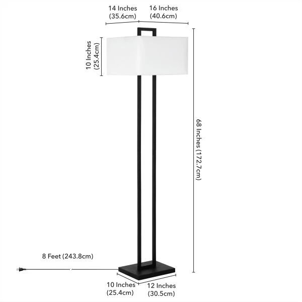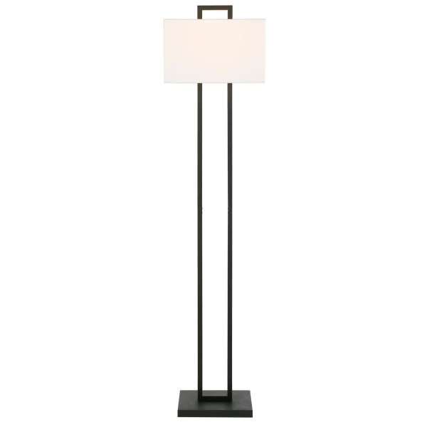 Adair 68″ Tall Floor Lamp with Fabric Shade in Blackened Bronze/White – Bring a touch of modern elegance to your home with this contemporary floor lamp. A squared off arch that meets above the crisp rectangular shade emphasizes the verticality of the fixture and creates a bold yet simple silhouette. The transitional style of this 68” floor lamp allows it to blend in or stand out in any room of your home.