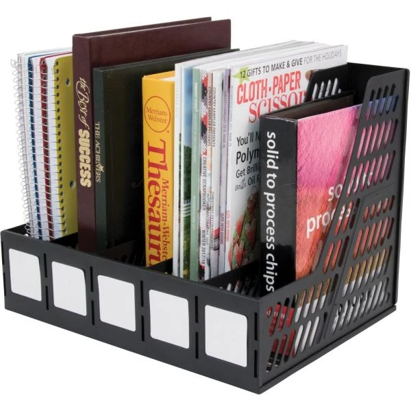 Advantus Literature File, Five Slots, 13.25 x 10 x 10.25, Black – Keep magazines, catalogs, file folders and other literature neat and accessible. Separate compartments help organize materials and keep them upright. Ships flat and snaps together, no tools required. Large labeling area on front to clearly identify contents for quick retrieval and easy filing; white labels included. Durable plastic.