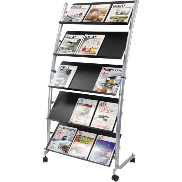 Alba Large Mobile Literature Display – Display a wide range of literature on this Large Mobile Display with up to 15 A4-size brochures or magazines tempting your guests. Large capacity allows immediate identification of your publications or documents. Each of the four roller casters including two with brakes allow easy mobility to give you the option to move this display from room to room. Large-capacity shelves can hold three 350-page literature items per shelf.