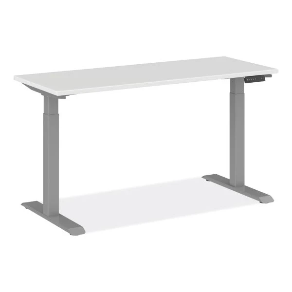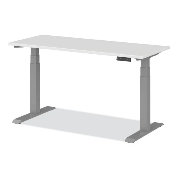 Alera AdaptivErgo Sit-Stand Three-Stage Electric Height-Adjustable Table with Memory Controls, 60” x 24” x 30″ to 49″, White – Set the perfect height when sitting or standing, when you choose this electric, three-stage, height-adjustable table. Durable, powder-coated steel base features a 250 lb maximum lift capacity, a 26.13″ lift/lower range (from 21.63″ to 47.75″) 60” x 24” table top, as well as a one-touch, four memory setting controller. Dual-motors provide speeds of up to 1.5″ per second (depending on load). Adjustable leveling glides help you compensate for uneven floors. Base includes integrated cable-management channels.
