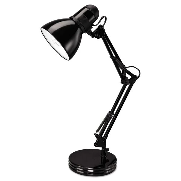 Alera Architect Desk Lamp, Adjustable Arm, 6.75w x 11.5d x 22h, Black – The workhorse lamp for any office, studio, or home. Two-point adjustable arm for maximum reach when you need it and out-of-the-way when you don’t. Adjustable shade rotation to focus light where needed. Includes tension knobs to lock arm and shade in working position. Tower style weighted base includes locking pin to prevent lamp from lifting during use. Metal base, arms and shade for maximum durability. 13W CFL bulb is included. Rotary on/off switch conveniently located on shade.