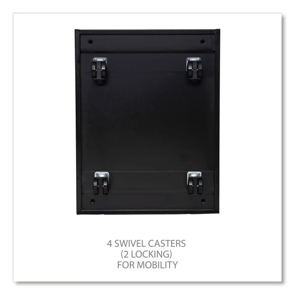 - Four casters (two locking) for mobility or four glides for stationary use.
