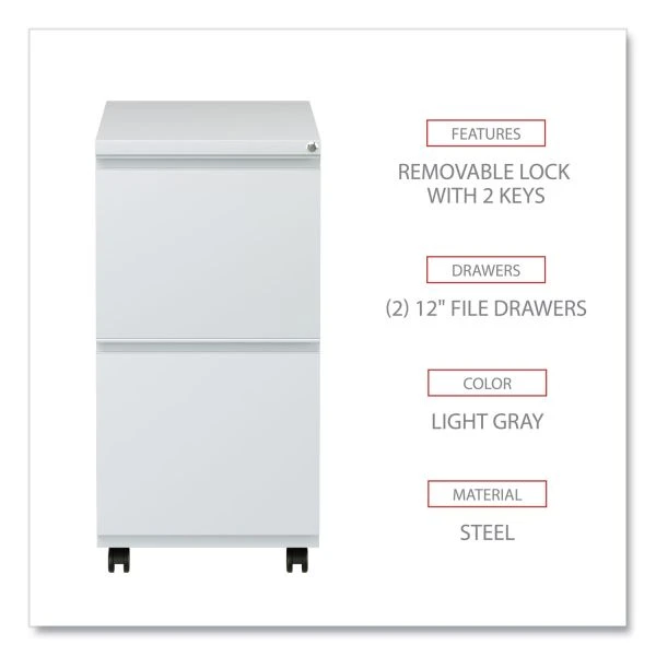 Alera File Pedestal with Full-Length Pull, Left or Right, 2 Legal/Letter-Size File Drawers, Light Gray, 14.96″ x 19.29″ x 27.75″ – Get organized with a high-sided file cabinet with drawers that accommodate letter or legal-sized hanging files. Steel ball bearing telescoping slide suspension helps drawers glide smoothly and with ease. The counterweight prevents tipping. Equipped with four casters, two locking, two non-locking. Full-length pull permits easy opening. Single key core removable lock with two keys. Durable powder coated finish helps prevent scratches.