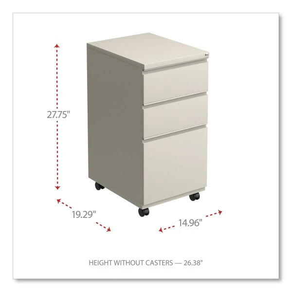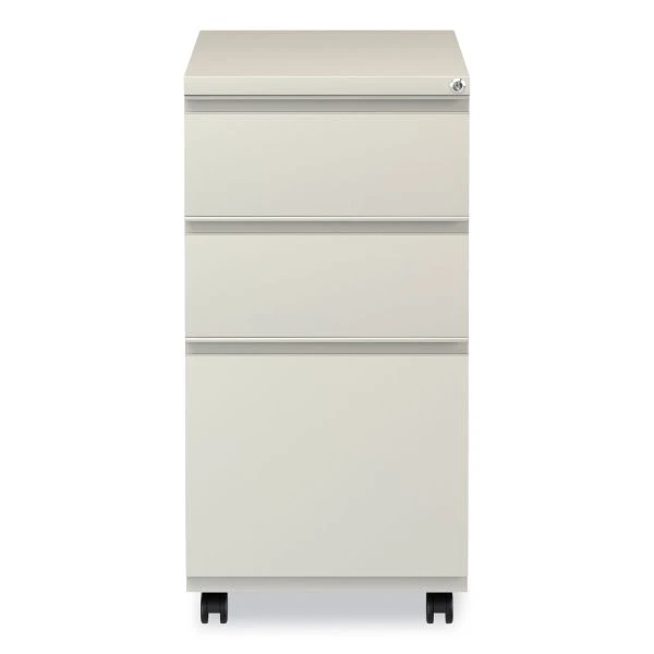 Alera File Pedestal with Full-Length Pull, Left or Right, 3-Drawers: Box/Box/File, Legal/Letter, Putty, 14.96″ x 19.29″ x 27.75″ – Get organized with a high-sided file cabinet with drawers that accommodate letter or legal-sized hanging files. Steel ball bearing telescoping slide suspension helps drawers glide smoothly and with ease. The counterweight prevents tipping. Equipped with four casters, two locking, two non-locking. Full-length pull permits easy opening. Single key core removable lock with two keys. Durable powder coated finish helps prevent scratches.