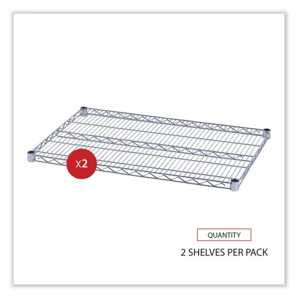 Alera Industrial Wire Shelving Extra Wire Shelves, 36w x 24d, Silver, 2 Shelves/Carton – Add extra shelves to existing units, build your own customized unit, or add on shelf extensions with these shelves (combined with Stackable Poles and Shelf Connecting Hooks). Strong welded wire construction provides exceptional strength and stability. Open design allows air circulation and helps reduces dust build-up. Ideal for commercial applications. Snap-on design assembles in minutes. Includes two shelves and shelfs lock clips.