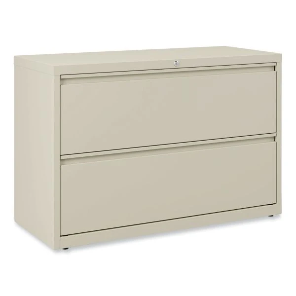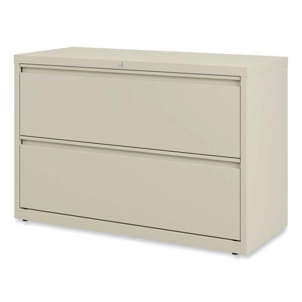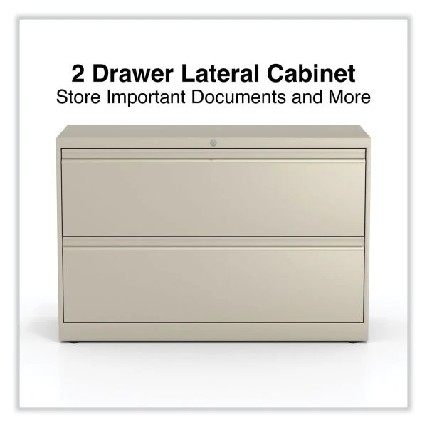 Alera Lateral File, 2 Legal/Letter-Size File Drawers, Putty, 42″ x 18.63″ x 28″ – Drawers with side-to-side hang rails to accommodate letter/legal hanging files. Full drawer extension on steel ball bearing telescoping slide suspension helps drawers glide with ease. Stylish, full-width radius edge recessed pulls help to quickly open and close drawers. Anti-tipping interlock system allows only one drawer to open at a time. Single key core removable lock with two keys. Four adjustable leveling glides. Durable powder coated finish helps prevent scratches.