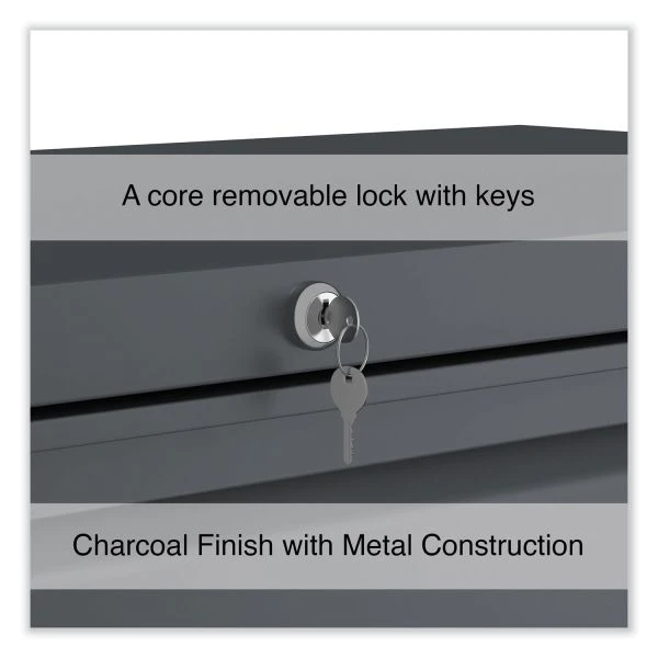 Alera Lateral File, 3 Legal/Letter/A4/A5-Size File Drawers, Charcoal, 42″ x 18.63″ x 40.25″ – Drawers with side-to-side hang rails to accommodate letter/legal hanging files. Full drawer extension on steel ball bearing telescoping slide suspension helps drawers glide with ease. Stylish, full-width radius edge recessed pulls help to quickly open and close drawers. Anti-tipping interlock system allows only one drawer to open at a time. Single key core removable lock with two keys. Four adjustable leveling glides. Durable powder coated finish helps prevent scratches.