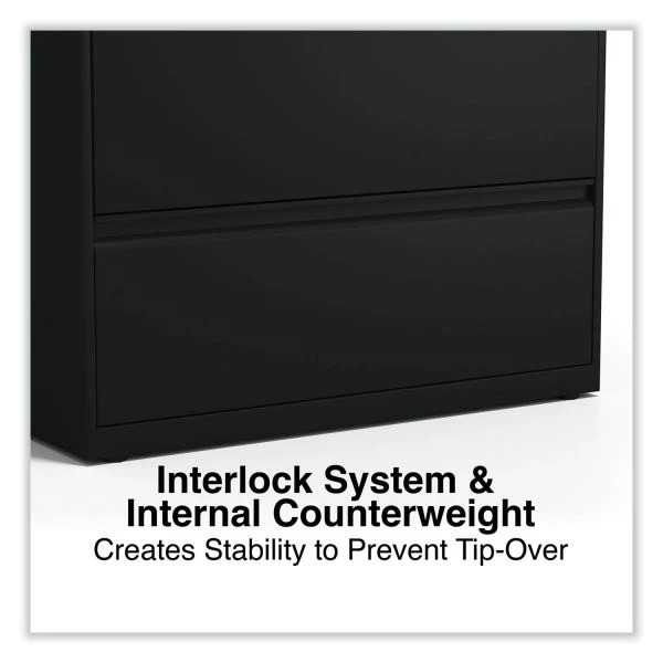 - Anti-tipping interlock system allows only one drawer to open at a time.