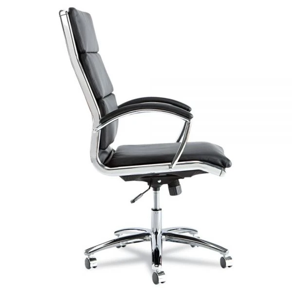Alera Neratoli High-Back Slim Profile Chair, Supports up to 250 lbs., Black Seat/Black Back, Chrome Base – Contemporary cushioned seating with a slim profile. Waterfall seat reduces pressure on the back of the knees for improved circulation. Padded arm caps for comfort and support. Five-star base with casters for easy mobility.