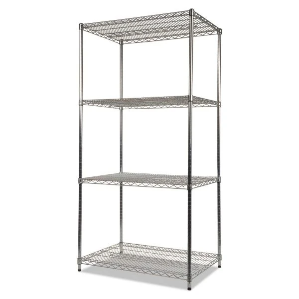 Alera NSF Approved Industrial Heavy Duty Wire Shelving Starter Kit, 4-Shelf, 36w x 24d x 72h,Silver – Ideal storage solution for industrial and commercial use. Snap-together design assembles in minutes. Strong welded wire construction. Can be set up as a four-tier single rack or as two two-tier racks to meet specific needs. Open design allows air circulation and reduces dust build-up.