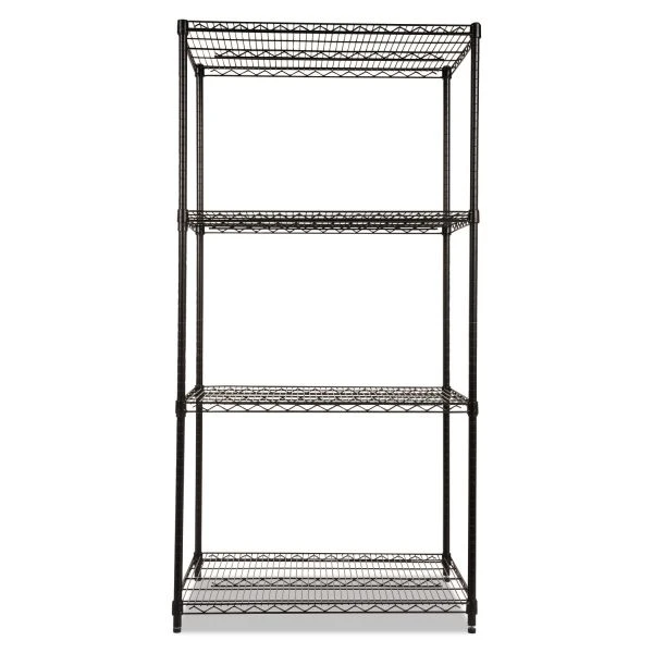 Alera NSF Certified Industrial Four-Shelf Wire Shelving Kit, 36w x 24d x 72h, Black – Ideal storage solution for industrial and commercial use. Snap-together design assembles in minutes. Strong welded wire construction. Can be set up as a four-tier single rack or as two two-tier racks to meet specific needs. Open design allows air circulation and reduces dust build-up.