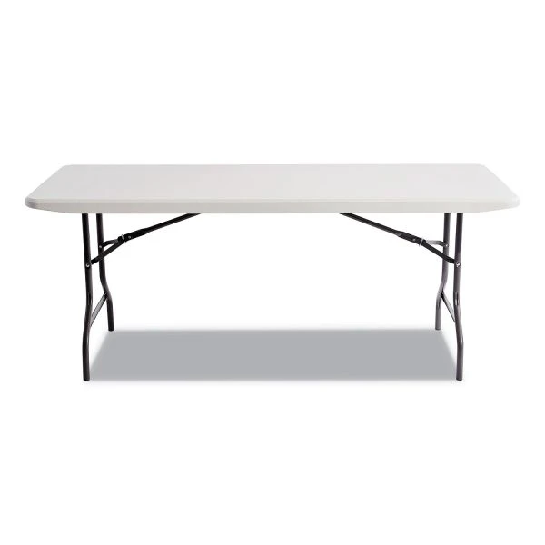 Alera Resin Rectangular Folding Table, Square Edge, 72w x 30d x 29h, Platinum – Lightweight and durable folding table for indoor and outdoor use. Legs fold into underside cavity for safe storage and easy transport. Made with blow-molded high-density polyethylene top is dent-, scratch- and water-resistant.