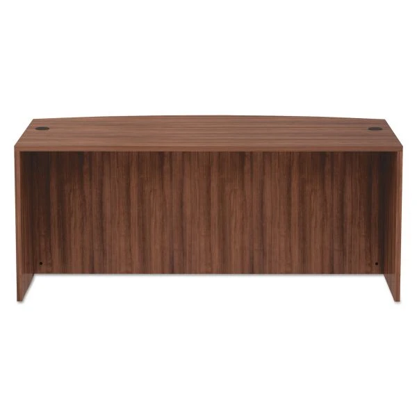 Alera Valencia Series Bow Front Desk Shell, 71″ x 41.38″ x 29.63″, Modern Walnut – Commercial grade laminate work surface and side panels are water-, scratch- and stain-resistant. Charcoal accent line under worksurface adds a distinctive touch. Arched front with up to 18” of conference overhang. Protective edge banding helps prevent damage from bumps. Two grommets for cable and wire management. Full-length modesty panel for privacy.