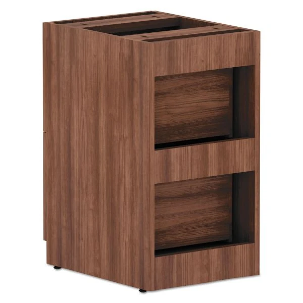 Alera Valencia Series Full Pedestal File, Left/Right, 2 Legal/Letter-Size File Drawers, Modern Walnut, 15.63″ x 20.5″ x 28.5″ – Freestanding pedestal file cabinet that attaches under worksurface. Sturdy, four-sided drawer construction with separate front panel. Full-extension ball bearing slides on file drawer for easy access to files. Drawers lock for securing contents. Durable 3 mm edge banding protects against bumps and dings. Two, fold-away safety keys for a slimmer profile are included.