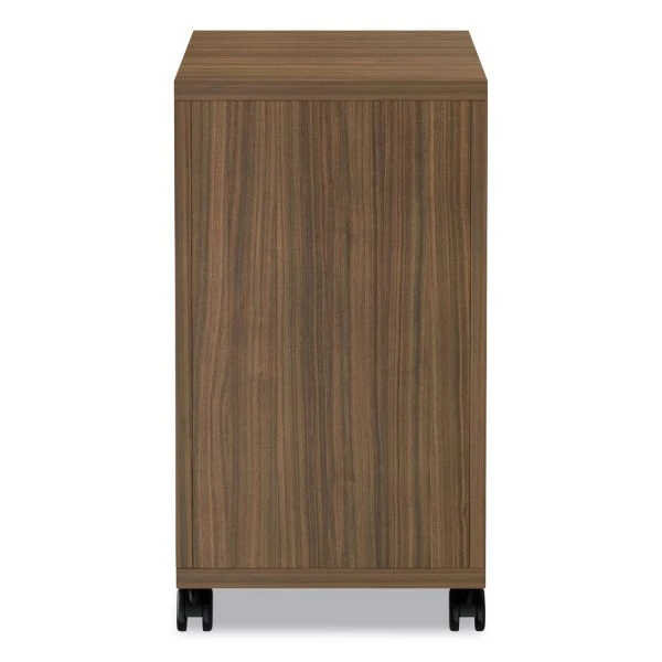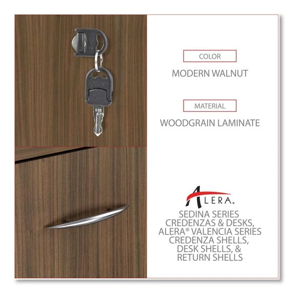 Alera Valencia Series Mobile Pedestal, Left or Right, 2 Legal/Letter-Size File Drawers, Modern Walnut, 15.38″ x 20″ x 26.63″ – A contemporary classic file cabinet with clean lines and modern metal work. Thermally fused woodgrain laminate is scratch-, dent-, and water-resistant. The drawers operate on steel ball bearing, full-extension glides and accommodate letter/legal filing. Central locking safety keys fold-away for a slimmer profile. Easily mobile on five casters (two locking) and front center caster helps prevent tipping. Arrives fully assembled, just attach casters.