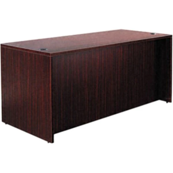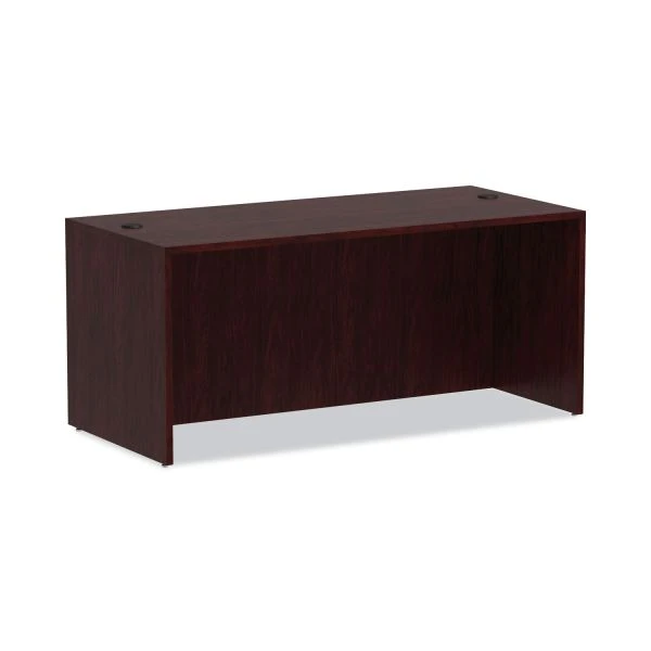 Alera Valencia Series Straight Front Desk Shell, 65″ x 29.5″ x 29.63″, Mahogany – Durable, commercial grade laminate work surface and side panels are water, scratch, and stain resistant. The charcoal accent line under the work surface adds style and a distinctive touch. A protective edge banding helps to prevent damage from bumps. Two grommets for cable and wire management to tuck away your computer and device cords. Full-length modesty panel for added privacy.