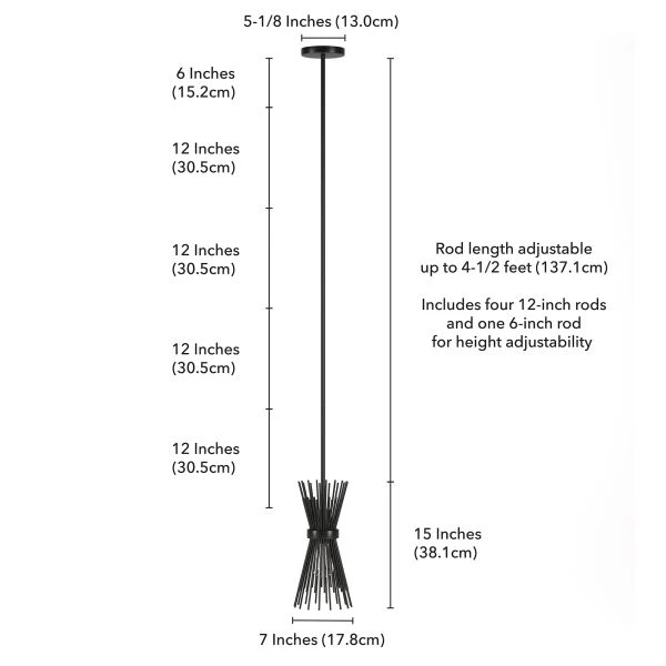 Andromeda 7″ Wide Starburst Pendant with Metal Shade in Blackened Bronze/Blackened Bronze – Add an eye-catching modern touch to your living room, dining room, kitchen, or foyer with this metal starburst pendant fixture. Metallic rods are artfully gathered into an abstract hourglass-shade that allows your choice of bulb to shine. The 8′ foot adjustable cord lets you customize this fixture to fit your space perfectly.
