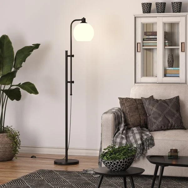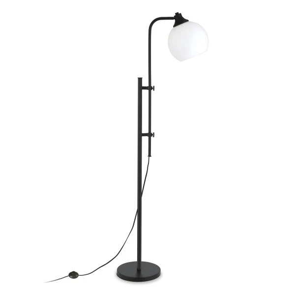 Antho Height-Adjustable Floor Lamp with Glass Shade in Blackened Bronze/White Milk – This industrial floor lamp takes notes from factory lighting. It lightens the mood with a white milk glass shade, creating an effortless retro vibe. The height is adjustable from 52.5″ to 68″, allowing you to customize the fixture to best suit your space.