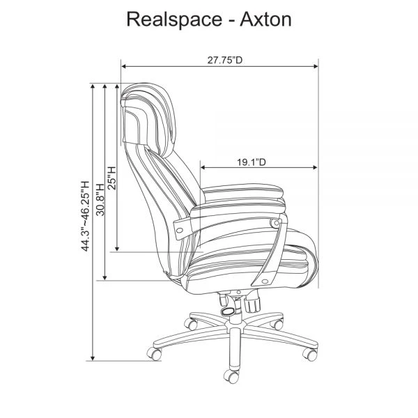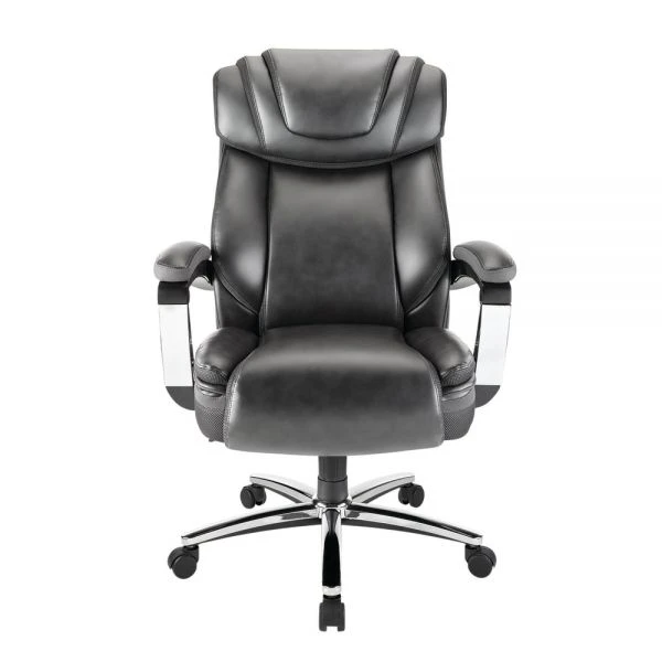 Axton Big & Tall Bonded Leather High-Back Chair, Dark Gray/Chrome, BIFMA Certified – Give your workspace an air of sophistication with this gray Realspace Axton executive chair. The bonded leather fabric offers durability and easy maintenance, while the waterfall cushion and lumbar support provide all-day comfort. Featuring an adjustable headrest and seat height lever, this Realspace Axton executive chair provides fast, precise customization, and the tilt-lock and tilt-tension controls support versatile seat angles.