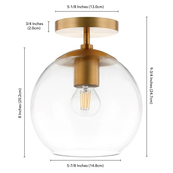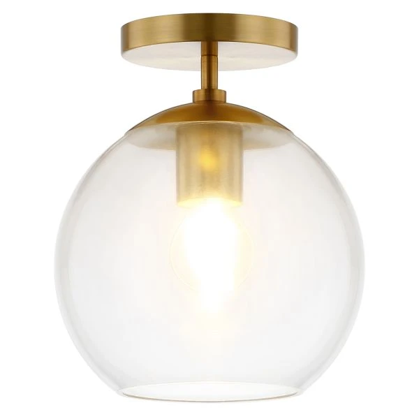 Bartlett 9″ Wide Semi Flush Mount with Glass Shade in Brass/Clear – Pairing a modern canopy with a retro-inspired drop-globe shade, this semi flush mount ceiling light creates a classic look in your entranceway, hallway, or dining room. The semi-enclosed glass shade showcases the bulb of your choice – try a vintage-style Edison bulb for an effortless throwback vibe. Available in a variety of on-trend finishes and shade colors, this fixture can blend in or stand out in many décor styles and color schemes.