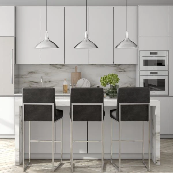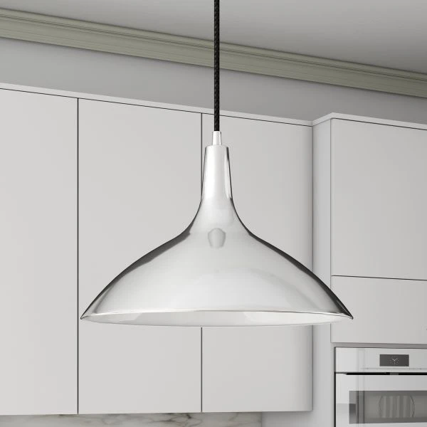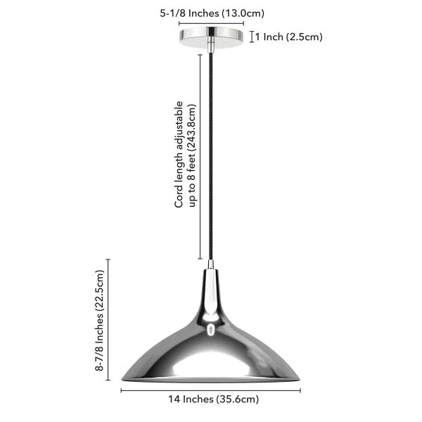 Barton 14″ Wide Pendant with Metal Shade in Polished Nickel/Polished Nickel – Minimalist mid-century design meets modern Scandinavian chic with this simple, yet dynamic pendant. The wide, stout cone of the metal shade lends an organic feel to the piece while the on-trend neutral finishes blend easily into any color palette. The 8′ foot adjustable cord lets you customize this fixture to fit your space perfectly.