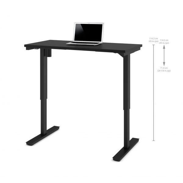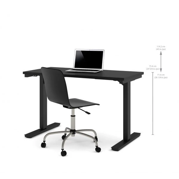 Bestar 24″ x 48″ Electric Height adjustable table in Black – By adding the Bestar electric height adjustable table to your work environment, you ensure the best sitting position according to your size while benefiting of all the advantages to work in a standing position. The electric mechanism allows you to quickly and quietly adjust the height of the table from 28″ to 45″. Durable 1″ commercial grade work surface with melamine finish that resists scratches, stains and burns. The mechanism meets or exceeds ANSI/BIFMA performance standards. The control button is located on the front edge of the work surface for an easy access. Voltage : 110V. The top surface is available in a wide variety of finishes.