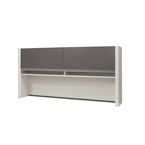 Bestar Connexion Hutch for credenza in Slate & Sandstone – Connexion is a contemporary and durable collection that features a wide variety of configuration options that will adapt to your specific needs. The hutch for credenza offers large closed storage space, efficient wire management and two large paper shelves. The doors are fitted with strong lift up hardware. The large flip up doors bring a modern and original touch. This unit must sit on the Connexion credenza. This unit meets or exceeds ANSI/BIFMA performance standards. Also available in Bordeaux and Slate finish.