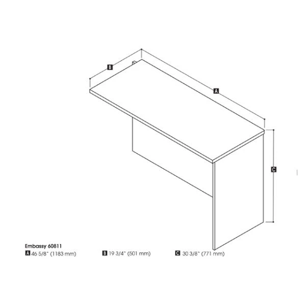 Bestar Embassy return table in Dark Chocolate – Embassy offers numerous configuration possibilities for various uses. Offering smaller or larger desks, this collection is ideal for every type of workplace including the home office. The return table features a durable 1″ commercial grade work surface with melamine finish that resist scratches, stains and wear. Deluxe PVC edge. The return table also features efficient wire management and classic moldings. This unit meets or exceeds ANSI/BIFMA performance standards. Also available in Tuscany Brown finish.