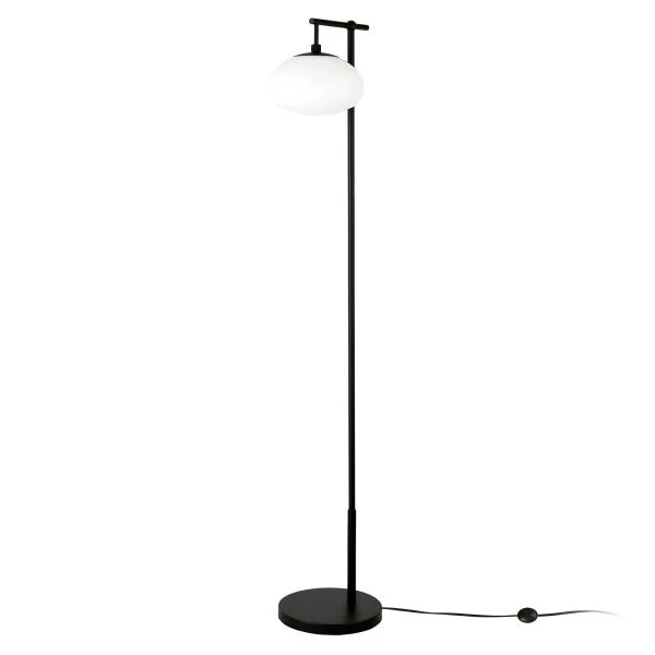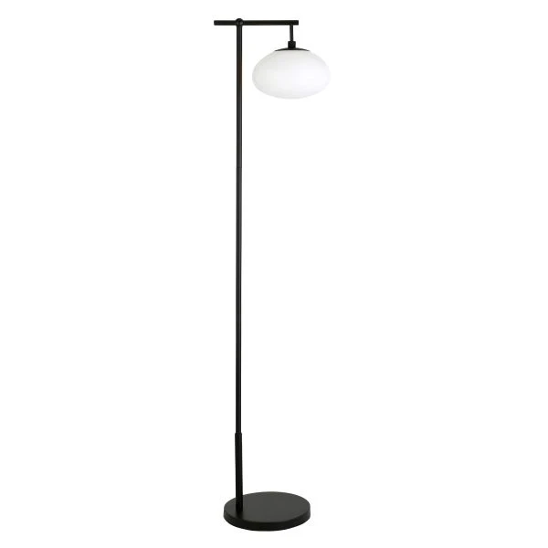 Blume 68″ Tall Arc Floor Lamp with Glass Shade in Blackened Bronze/Milk White – The clean and modern lines of this floor lamp, paired with its glass globe shade adds a visual interest to any room. The L-shaped frame allows light to shine directly on your workspace or reading nook. The handmade globe shade creates a subtle vintage look, while still maintaining a contemporary look and feel. This floor lamp is the perfect companion to your living room, bedroom, den, and more.