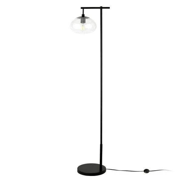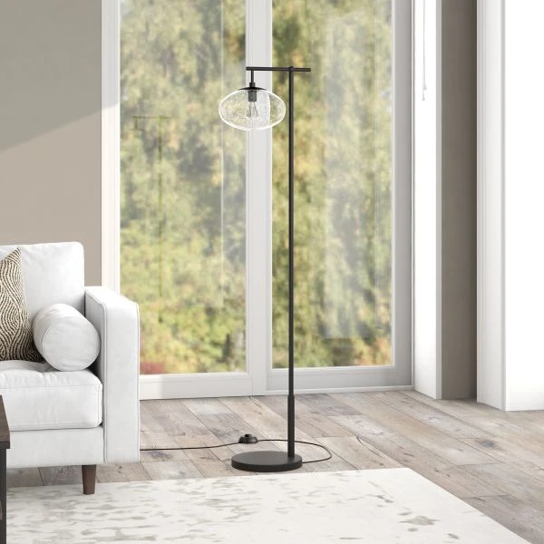 Blume 68″ Tall Arc Floor Lamp with Glass Shade in Blackened Bronze/Seeded – The clean and modern lines of this floor lamp, paired with its glass globe shade adds a visual interest to any room. The L-shaped frame allows light to shine directly on your workspace or reading nook. The handmade globe shade creates a subtle vintage look, while still maintaining a contemporary look and feel. This floor lamp is the perfect companion to your living room, bedroom, den, and more.