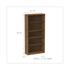 Alera Valencia Series Bookcase, Five-Shelf, 31.75w X 14d X 64.75h, Modern Walnut