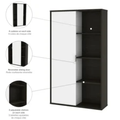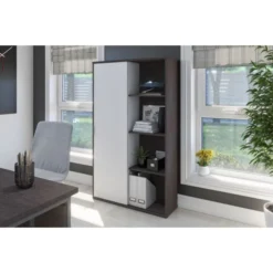 Bestar Aquarius Bookcase With Sliding Door – Deep Grey & White