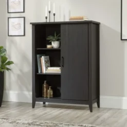 Sauder Summit Station 52″H Bookcase With Sliding Door, Raven Oak