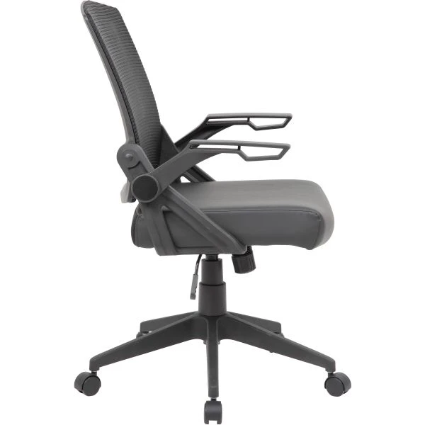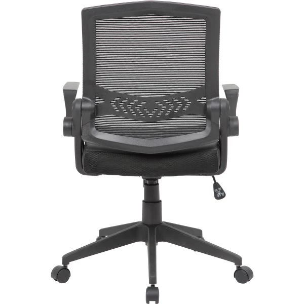 Boss Mesh Flip Arm Task Chair – Drafting stool features a luxurious seat and breathable mesh back to help distribute weight evenly and provide back support by conforming to your unique back shape. Pneumatic gas-lift mechanism allows you to quickly adjust your height to accommodate any work area. Adjustable, flip arms provide maximum comfort and flip up when they’re not needed. Dual-wheel casters roll smoothly for effortless movements. Spring tilt mechanism, tilt tension, and upright lock offer more ways to adjust the chair to meet your personalized standards of comfort. Drafting stool is designed to support up to 275 lb.
