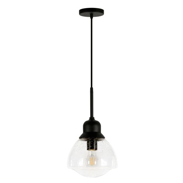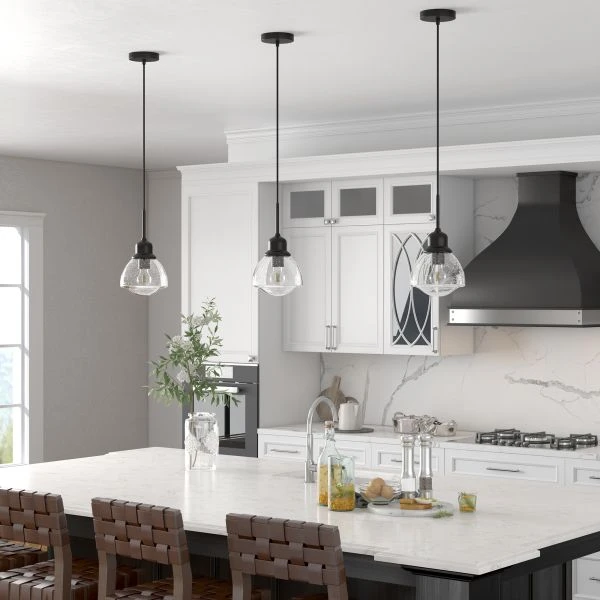 Brooks 8.12″ Wide Pendant with Glass Shade in Blackened Bronze /Seeded – Illuminate your kitchen, entryway or dining room table with this schoolhouse-inspired pendant light. Featured in a variety of finishes and glass styles, this hanging light is a sleek update of a retro style, equally at home in a modern farmhouse kitchen or a contemporary dining room. The 8′ foot adjustable cord lets you customize this fixture to fit your space perfectly.