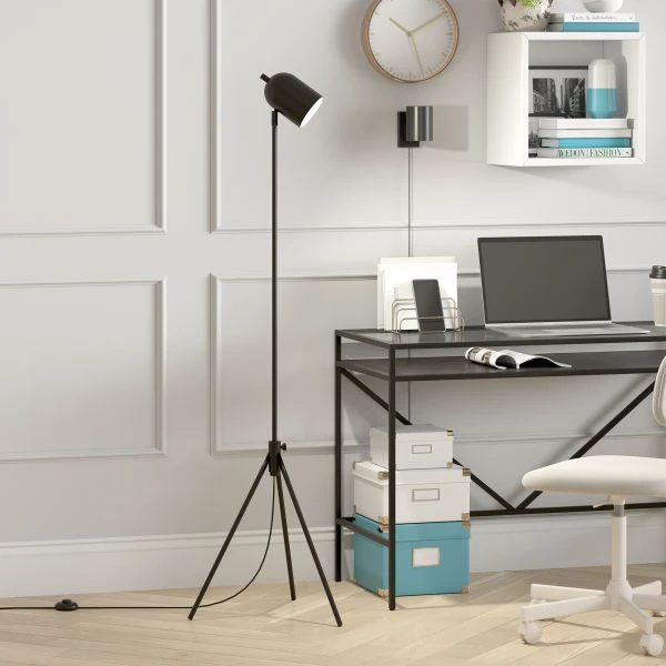 Bruno Tripod Floor Lamp with Metal Shade in Blackened Bronze/Blackened Bronze – Infuse your space with a editorial feel with the addition of this modern tripod floor lamp. Inspired by studio lighting, this fixture features an adjustable center pole and is finished in your choice of neutral metallic tones. Create an easy designer look in your bedroom, living room, or workspace