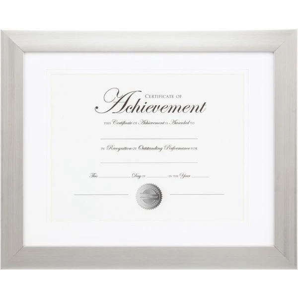 Burnes Brushed Silver Document Frame – Document frame features a contemporary design to provide a sleek, professional way to showcase any special achievement. Versatile design can be displayed vertically or horizontally to provide multiple display options. Document frame with a ready-to-use certificate is perfect for your office, home, studio and more.