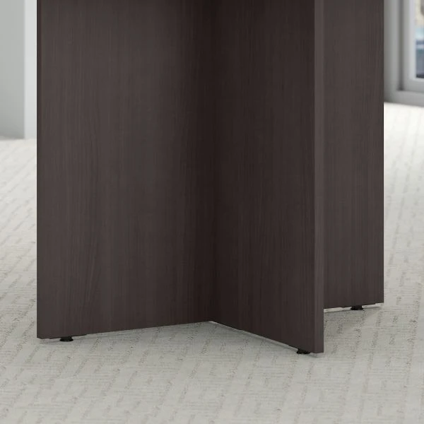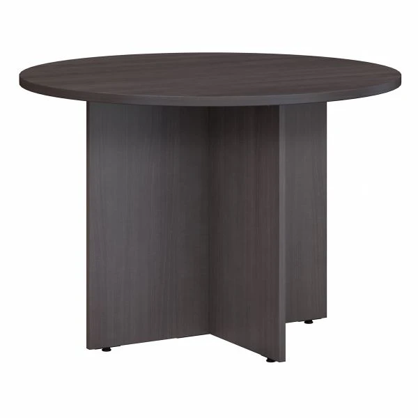 Bush Business Furniture 42W Round Conference Table with Wood Base in Storm Gray – Bring your team together in an open or private work environment with the Bush Business Furniture 42W Round Conference Table. At just the perfect size, the multipurpose table comfortably seats 4 in a collaborative classroom or training area, private office, or small conference room without taking up too much space. A finished underside prevents snagged clothing, while a classic wood base provides durability and stability on any floor. Continuous edge banding protects against nicks and dings from collisions, and the thermally fused laminate finish resists stains and scratches throughout years of everyday meetings. The commercial-grade Round Conference Table meets ANSI/BIFMA quality test standards and comes with a Bush Business Furniture Limited Lifetime Warranty. Browse the complete line of Conference Tables, available in a variety of styles and finishes to complement your office. American made with U.S. and imported parts.