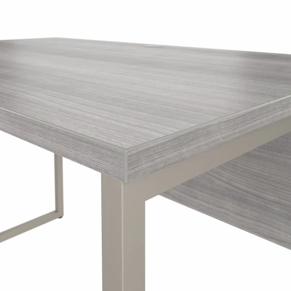 Bush Business Furniture Hybrid 48W x 30D Computer Table Desk with Metal Legs in Platinum Gray – The Bush Business Furniture Hybrid 48W x 30D Computer Table Desk blends a durable work surface with sturdy metal legs to offer a stylish, long-lasting solution for the modern professional. Tackle your next project or assignment with a computer, books, paperwork and more on a desktop that supports up to 200 pounds. A built-in wire management grommet keeps cords and cables in order, so your work area remains free from unnecessary clutter. The Computer Desk’s open leg design and finished privacy panel allow it to look great facing any direction in a home or professional office environment. Find the perfect look for your space with five contemporary finish options: Black Walnut, Modern Hickory, Platinum Gray, Storm Gray and White. This modern desk has been meticulously tested to meet or exceed ANSI/BIFMA quality standards for safety, durability and performance and is backed by the Bush Business Furniture 10 Year Manufacturer’s Warranty. See the full Hybrid Collection for coordinating items to enhance your workspace as needed, including File Cabinets, Bookcases and Storage Cabinets (coordinating items sold separately). American made with U.S. and imported parts.