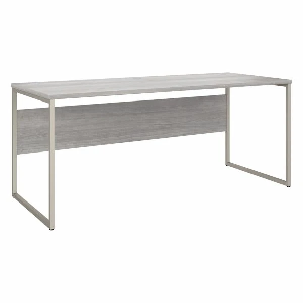 Bush Business Furniture Hybrid 72W x 30D Computer Table Desk with Metal Legs in Platinum Gray – The Bush Business Furniture Hybrid 72W x 30D Computer Table Desk blends a durable work surface with sturdy metal legs to offer a stylish, long-lasting solution for the modern professional. Tackle your next project or assignment with a computer, books, paperwork and more on a desktop that supports up to 200 pounds. Three built-in wire management grommets keep cords and cables in order, so your work area remains free from unnecessary clutter. The Computer Desk’s open leg design and finished privacy panel allow it to look great facing any direction in a home or professional office environment. Find the perfect look for your space with five contemporary finish options: Black Walnut, Modern Hickory, Platinum Gray, Storm Gray and White. This modern desk has been meticulously tested to meet or exceed ANSI/BIFMA quality standards for safety, durability and performance and is backed by the Bush Business Furniture 10 Year Manufacturer’s Warranty. See the full Hybrid Collection for coordinating items to enhance your workspace as needed, including File Cabinets, Bookcases and Storage Cabinets (coordinating items sold separately). American made with U.S. and imported parts.