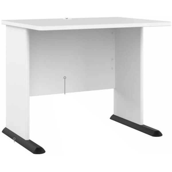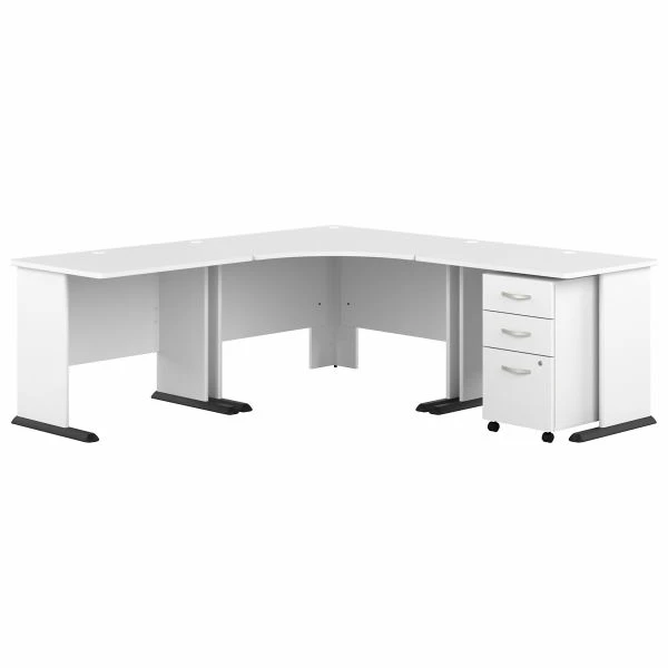 Bush Business Furniture Studio A 83W Large Corner Desk with 3 Drawer Mobile File Cabinet in White – The Bush Business Furniture Studio A 83W Large Corner Desk with 3 Drawer Mobile File Cabinet combines a fresh, contemporary appearance with the commercial quality construction needed to withstand years of everyday use. An expansive work surface makes this L shaped desk with drawers set perfect for those who need plenty of room to spread out. Set up with a computer and equipment on a durable thermally fused laminate desktop that supports up to 200 pounds. Three built-in wire management grommets keep cords and cables in order so the surface remains free from clutter. The base of the L desk features adjustable levelers to compensate for uneven floors, and wall attachment hardware is included along with the stable design for maximum safety and security. The filing cabinet’s bottom drawer accepts letter, legal and A4-size paperwork while a pair of box drawers organize supplies. The two bottom drawers can be locked to protect sensitive files and personal items. Find the right look for your space with three contemporary finish options: White, Storm Gray and Platinum Gray. This corner computer desk set has been meticulously tested to meet or exceed ANSI/BIFMA quality standards for safety, durability and performance and is backed by the Bush Business Furniture 10 Year Manufacturer’s Warranty. Upgrade your office as needed with a Studio A Storage Cabinet, Lateral File Cabinet and Bookcase (coordinating items sold separately). American made with U.S. and imported parts.