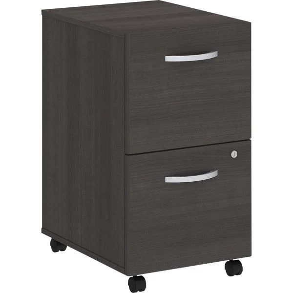 Bush Business Furniture Studio C 2 Drawer Mobile File Cabinet in Storm Gray – Studio C Collection offers a wide variety of work-space solutions that are built to endure years of use in a busy professional office. Contemporary style offers proven quality and a fresh finish. Studio C is perfect for a private, home or executive office with options for expansion into multi-person work areas. Thermally fused, Platinum Gray laminate surfaces are scratch-resistant and stain-resistant. Clean lines and extended modesty panels provide a professional feel. Brushed nickel hardware complements the contemporary finish. Desktops include built-in, wire-management grommets to maintain a neat work area.