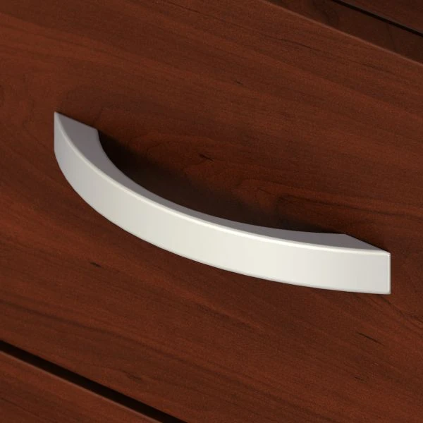 Bush Business Furniture Studio C 3 Drawer Mobile File Cabinet in Hansen Cherry – The Bush Business Furniture Studio C 3 Drawer Mobile File Cabinet rolls with you throughout your office or remains in place as needed on any surface. You’ll have your letter, legal and A4-size paperwork organized in no time as the filing cabinet ships fully assembled for your convenience. Two box drawers hold your pens, notepads, small office supplies and more to organize your workspace. The file drawer opens on smooth full-extension ball bearing slides, making it easy to reach those pesky papers all the way at the back. Dual-wheeled, hooded casters keep the 3 drawer cabinet moving on your office floor or carpet. A single lock secures the bottom 2 drawers to protect sensitive paperwork and personal items. When space is at a premium, the Mobile File Cabinet conveniently fits under a coordinating Studio C Desk (sold separately). Eye-catching Brushed Nickel drawer pulls complement your choice of several contemporary or traditional finishes to make the cabinet as attractive as it is functional. This rolling file cabinet comes with a 10 Year Warranty and meets ANSI/BIFMA quality test standards. See the full collection for coordinating items available to make your office your own with Studio C. American made with U.S. and imported parts.