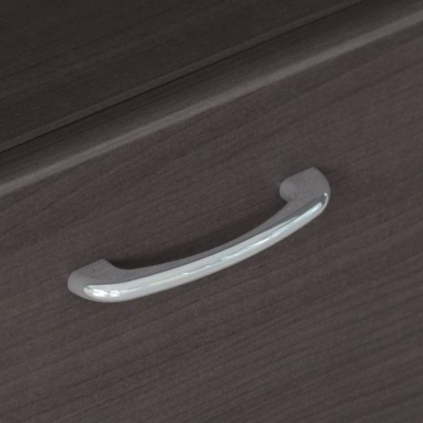 Bush Furniture Cabot 60W L Shaped Computer Desk with Hutch and 5 Shelf Bookcase in Heather Gray – Work in style with the Bush Furniture Cabot L Shaped Computer Desk with Hutch and 5 Shelf Bookcase. Enjoy a beautiful traditional look with smart features included for your convenience. The L Shaped Desk design provides a large durable work surface and just the right amount of storage to keep you feeling neat and organized. Desk storage details include an enclosed cabinet with a stylish fluted glass door and a box drawer for supplies. A file drawer opens on smooth full-extension ball bearing slides and accommodates letter, legal or A4-sized files. Technology features such as a built-in 4-port USB hub keep devices connected. The Hutch boasts a matching fluted glass door, two large open compartments and four work-in-progress areas to help keep your Desk surface clutter free, along with a cable management system to control cords. The 5 Shelf Bookcase creates the perfect spot for books or decorations and is designed with three adjustable shelves for flexible storage and two fixed shelves for structural strength. Choose from a wide variety of contemporary and traditional finishes with stylish hardware for a simple, elegant and timeless appearance. This L Desk with Storage is tested to meet ANSI/SOHO quality standards for safety and performance and is backed by the Bush Furniture 1 Year Manufacturer’s Warranty. See the full collection for coordinating items available.